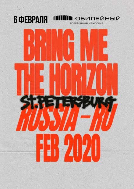 Bring Me the Horizon 6 fevralya SK Yubileyniy Sankt-Peterburg 8 fevralya DS Megasport Moskva. Podpisatsya na nashu stranitsu Vkontakte. 6 fevralya Sankt-Peterburg SK Yubileyniy Redkassa.