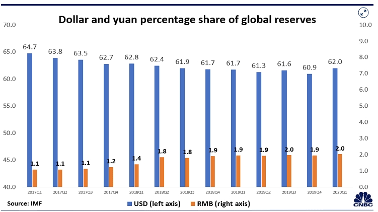 Rol natsionalnoy valyuti Kazakhstana prodolzhaet uvelichivatsya. Videlyaetsya tolko Rossiya s dvumya protsentami ot mirovoy torgovli. Tak dolya yuanya v kitayskom importe v Rossiyu uvelichilas s 2 protsentov v 2013 do 25 v 2019 godu otmechaet bank.