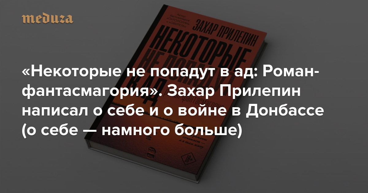 4 aprelya vikhodit noviy roman pisatelya Zakhara Prilepina Nekotorie ne popadut v ad posvyashchyonniy sobitiyam na Donbasse. Skachat besplatno knigu Nekotorie ne popadut v ad - Zakhar Prilepin v formatakh fb2 rtf epub pdf txt ili chitat onlayn. Skachivayte prilozheniya dlya iOS ili Android i chitayte Nekotorie ne popadut v ad gde ugodno dazhe.